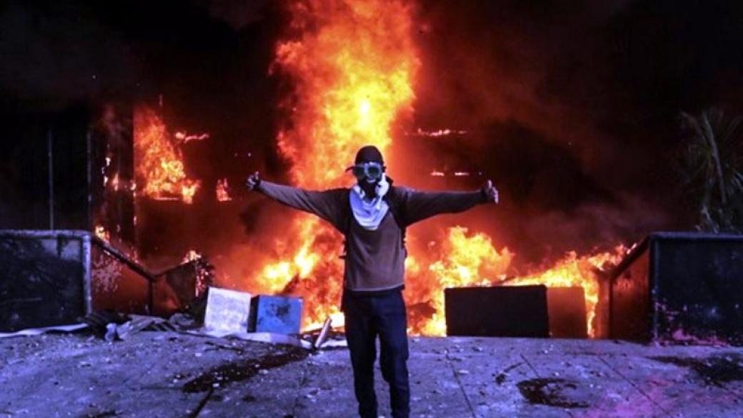 По информации, демонстранты забросали здание «коктейлями Молотова». При этом пострадали три человека.