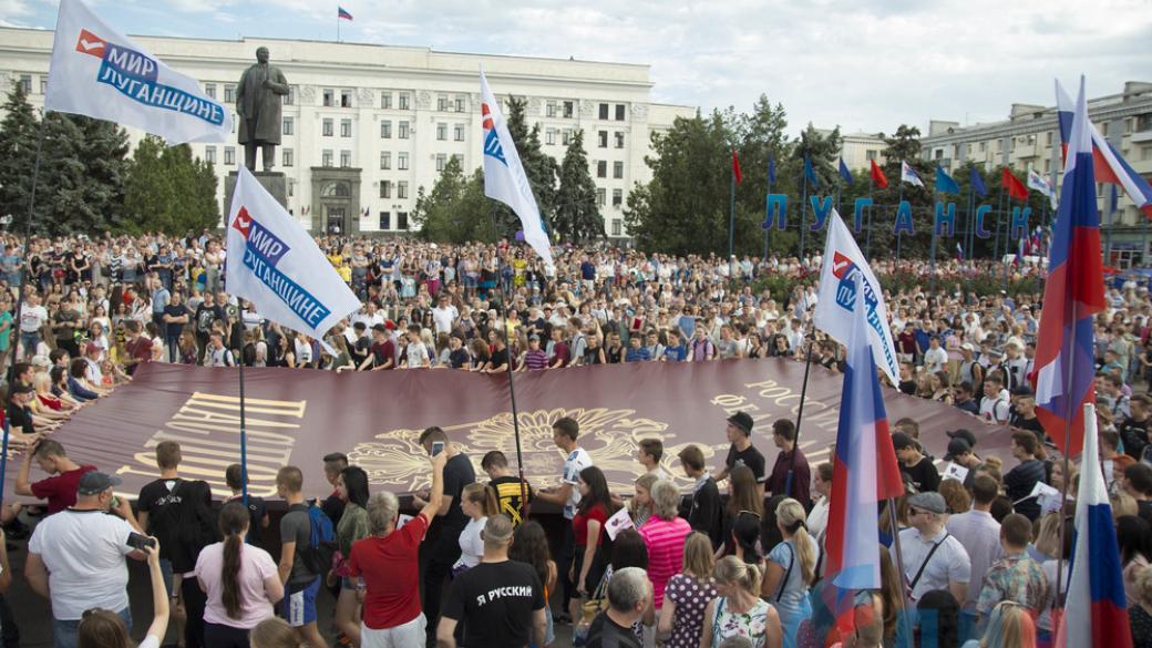 Так, на Театральной площади Луганска «общественные активисты» развернули баннер площадью 200 м². Действо сопровождалось композицией Олега Газманова «Вперед, Россия!», а также гимном РФ в исполнении группы «Любэ».