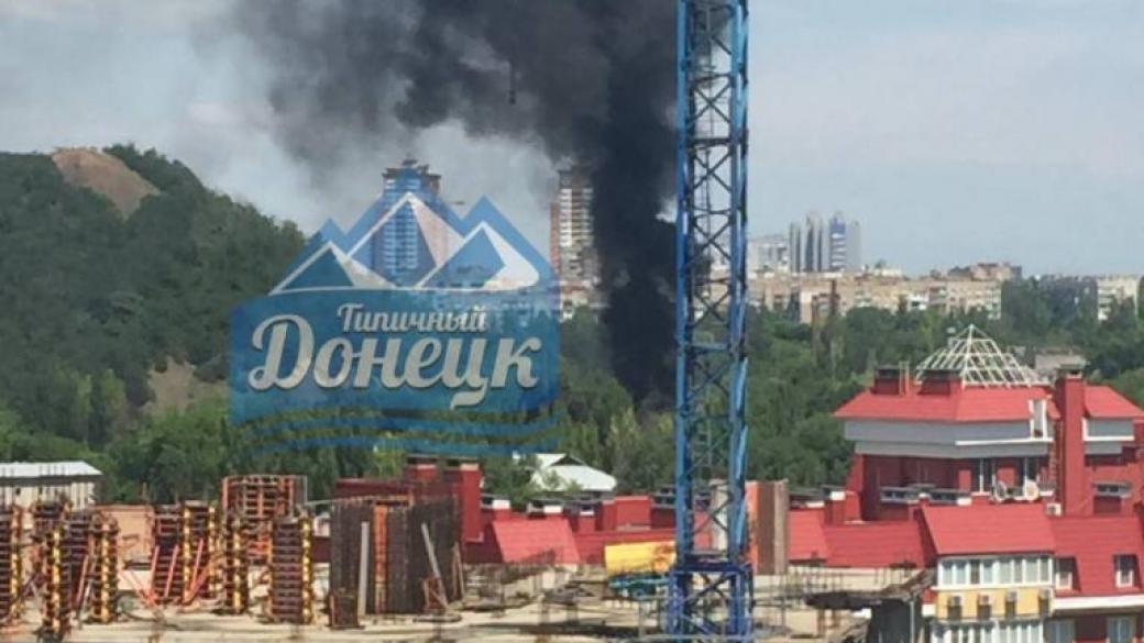 В районе Мотеля в Донецке после обстрела поднимается большой столб дыма