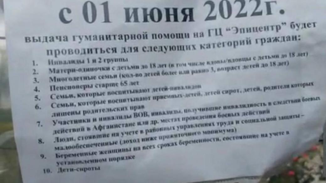 Оккупационные власти «официально» предупреждают, что с первого июля вся гуманитарка будет выдаваться только фактически нетрудоспособным.