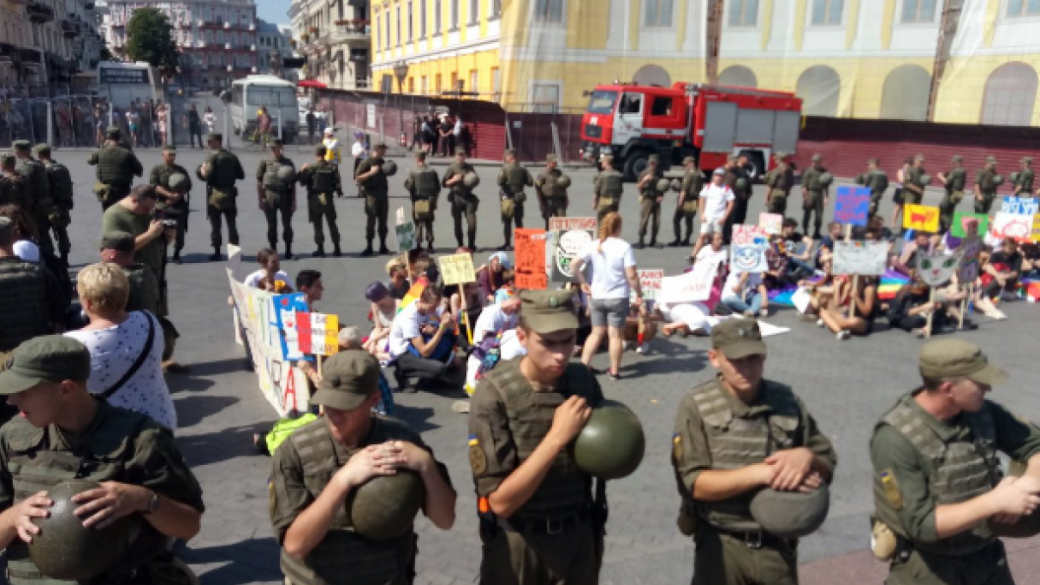 Журналисты отмечали: «Все собрались на Приморском бульваре. Здесь собралось до сотни представителей Марша равенства, большое количество полиции. Приморский бульвар огражден забором. Отмечу, что сейчас марш остановился, поскольку также на Приморском бульваре собрались оппоненты Марша равенства — это представители патриотических орагнизаций, их тоже до полусотни».