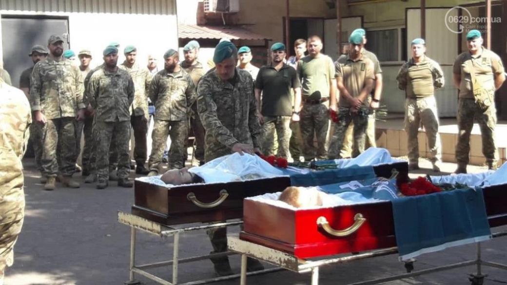 Сегодня в Мариуполе Донецкой области попрощались с погибшими военнослужащими 36-й бригады морской пехоты: прапорщиком Николаем Обуховским и матросом Александром Линчевским, погибшим на Донбассе в ночь с 11 на 12 сентября.