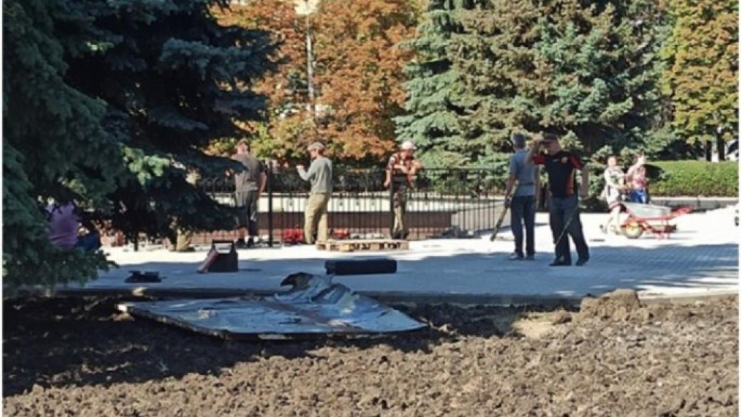 По словам горожан, плитка на площади была заменена на фэм-плитку. Также заменили металлические осветительные столбы на железобетонные и сняли большой LED-экран. На вьезде на площадь прикрепили надпись «Победа».