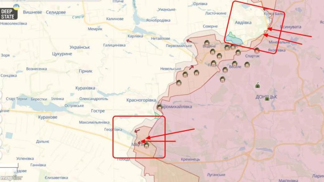 россияне увеличили количество обстрелов и штурмов Марьинки и Авдиики Донецкой области.