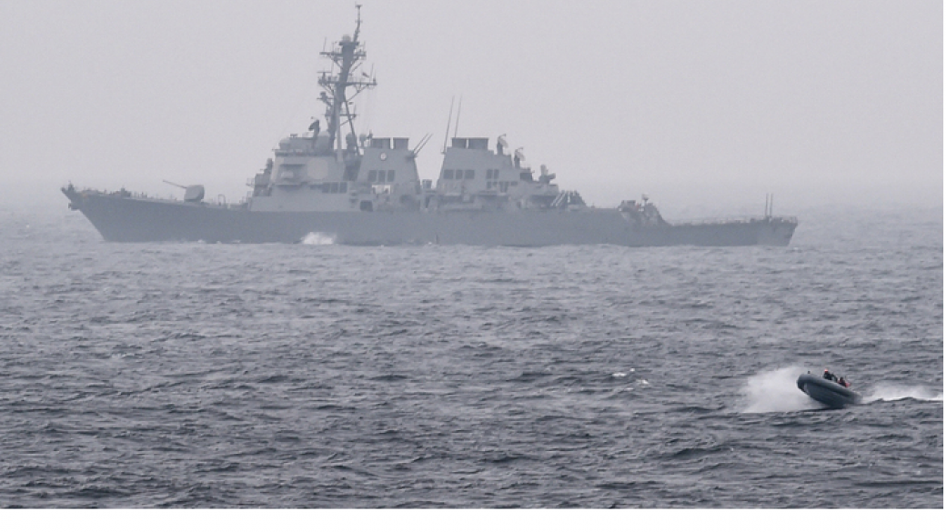 Как сообщает российский «Интерфакс» за маршрутом эсминца наблюдают несколько российских боевых кораблей — фрегат «Адмирал Эссен», малые ракетные корабли «Вышний Волочек» и «Орехово-Зуево» с крылатыми ракетами «Калибр».