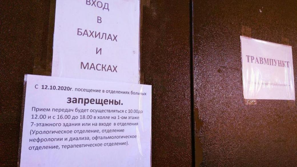 Он отмечает, что на входе в медучреждение висит объявление, в котором сообщается, что в отделение не будут пропускать ни родственников пациентов, ни других посетителей:
