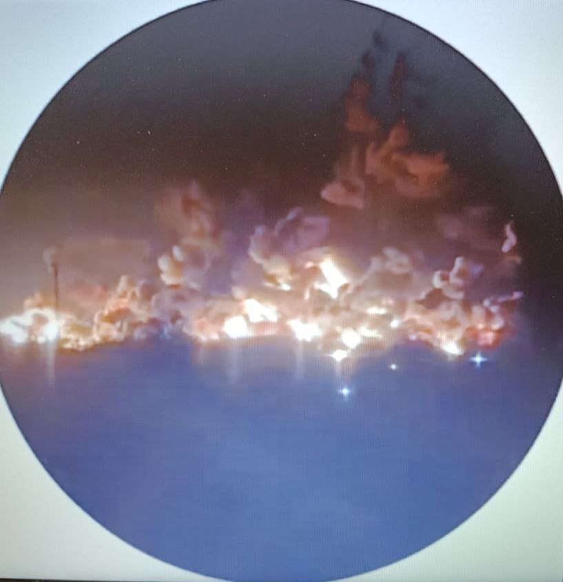 Масштабы пожара впечатляют: тепловые сигнатуры показывают клубы раскаленного воздуха над городом и над морем.