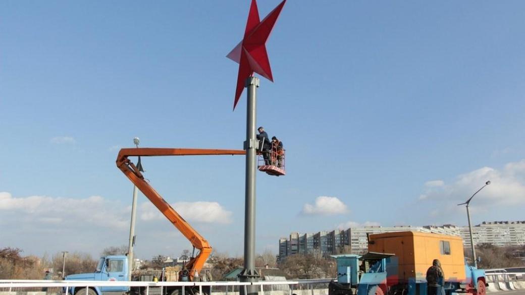 В оккупированном боевиками «ЛНР» Луганске мотоциклисты так называемого клуба «Ночные волки. Донбасс» полностью восстановили монумент «Звезда Победы».