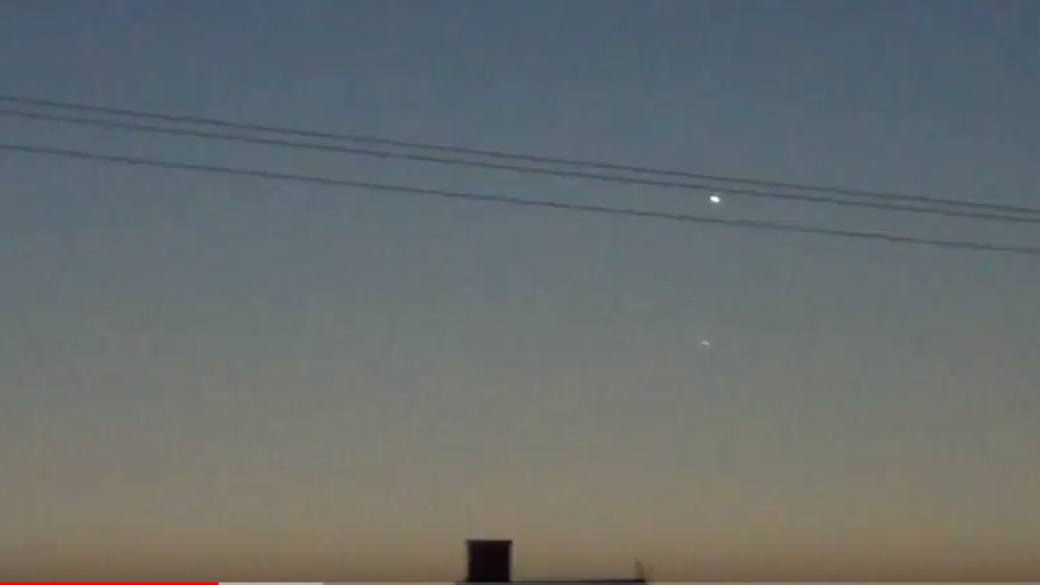 На видео видно, что на небе рядом находятся две яркие точки, являющиеся Венерой и Юпитером.