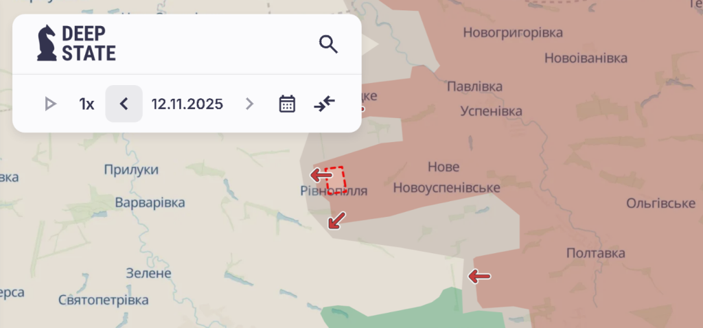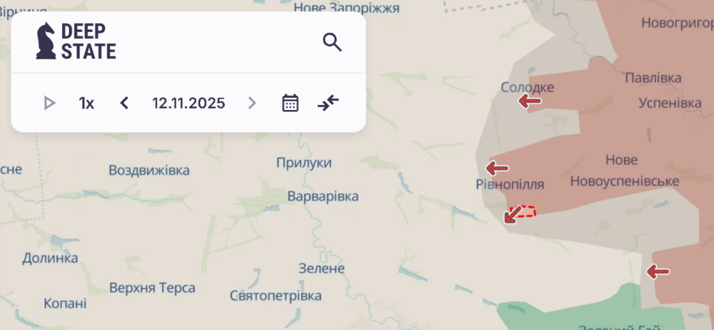 На Гуляйпольском направлении (Запорожская область) к вечеру 12 ноября российские подразделения смогли захватить западную часть Ровнополья, а также заняли село Яблоково.