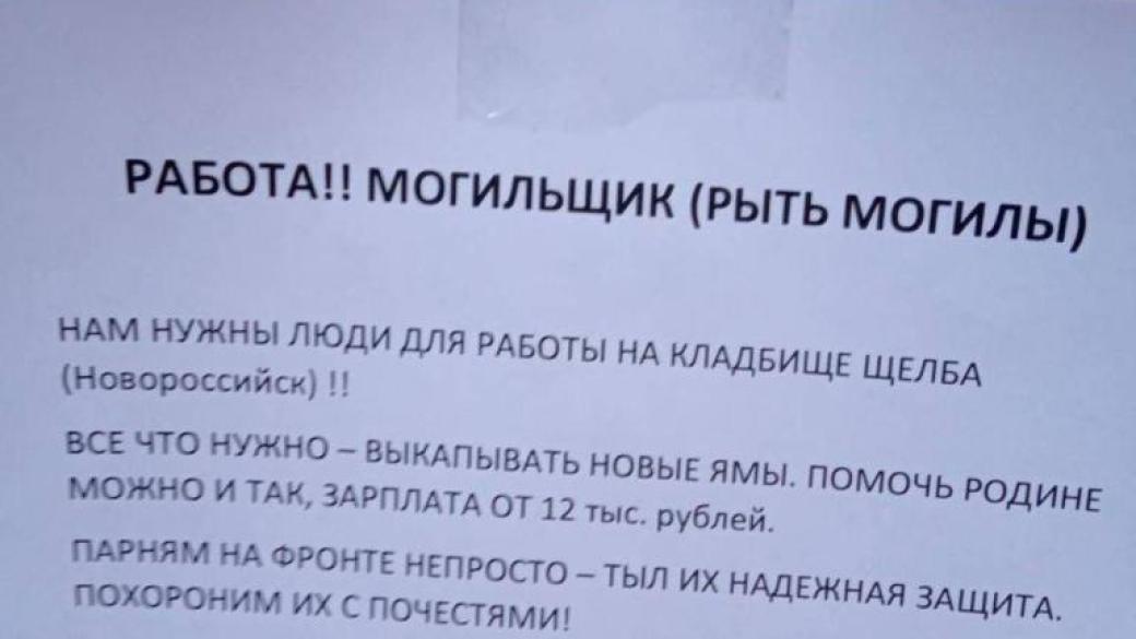 Он опубликовал подборку объявлений о трудоустройстве на кладбищах, которые размещают в городах России в больших количествах.
