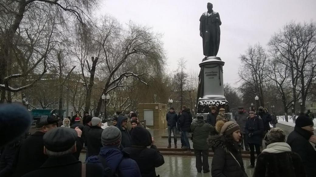 В Москве правоохранители задержали людей, принимавших участие в несогласованной акции протеста в поддержку политзаключенных у памятника Грибоедову.