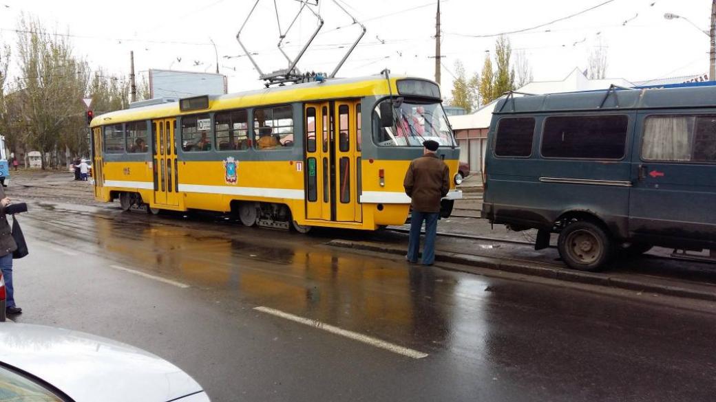 Во временно неподконтрольном украинскому правительству Енакиево (Донецкая область) из-за снежных заносов на дороге застрял трамвай. Об этом сообщают местные жители в социальных сетях.