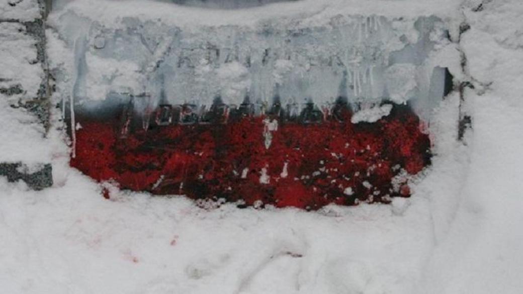 Неизвестные нарисовали на памятнике погибшим воинам УПА полосы белого и красного цвета.