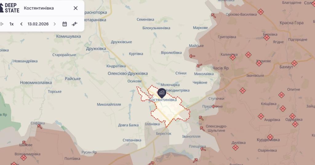 На карте DeepState обозначены "серым цветом" районы проникновения российских оккупантов на окраины Константиновки.