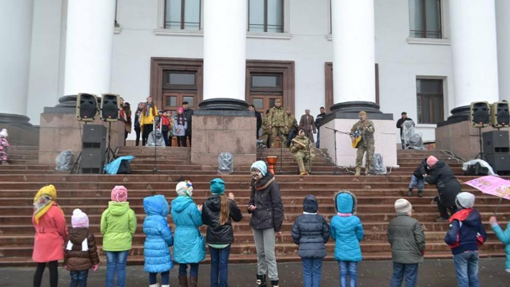 Со ступенек городского дворца звучали украинские песни, дети водили хороводы, а в деревянных домиках импровизированной ярмарки всех, кто пришел, ждали сувениры мастеров hand made, и вкусные угощения от местных кулинаров», — говорится в сообщении.