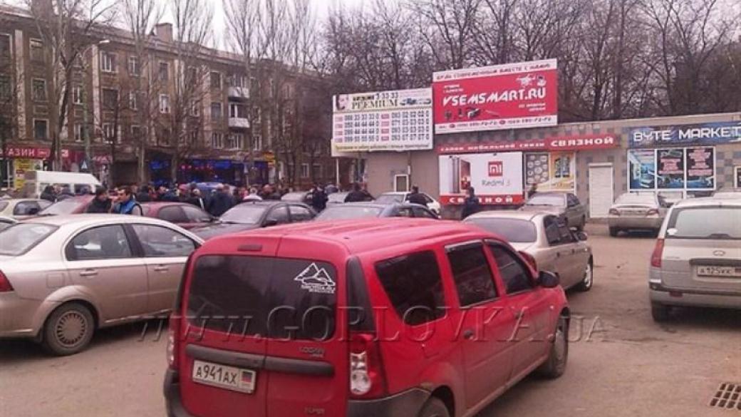Сегодня в оккупированной Горловке на центральной площади города прошла забастовка таксистов, возмутившихся действиями сотрудников райотдела «полиции ДНР», забравших более 15 автомобилей служб такси на штрафплощадку из-за отсутствия так называемых лицензий на осуществление пассажирских перевозок.