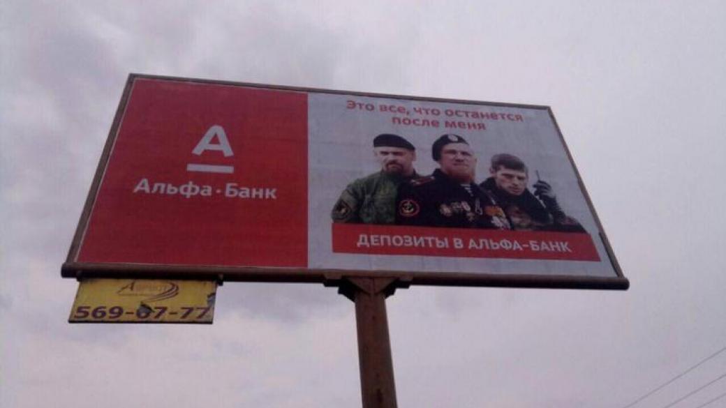 «Альфа-Банк» открещивается от размещения «рекламы с лицами боевиков ОРДЛО» в Киве и «резко осуждает грязные провокации, к которым прибегают неустановленные лица в попытке подорвать доверие к международному банку в Украине».
