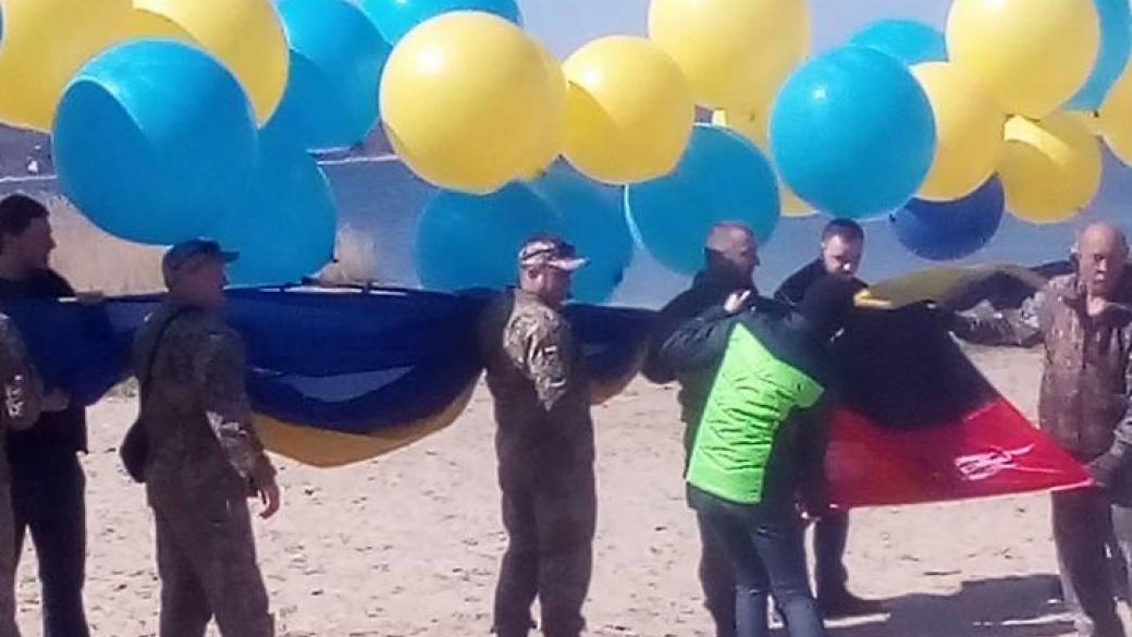 Боец Влад Борода заявил, что флаги были закреплены на желтых и голубых воздушных шарах, кроме того, активисты отправили в направлении оккупированных территорий наборы патриотических листовок