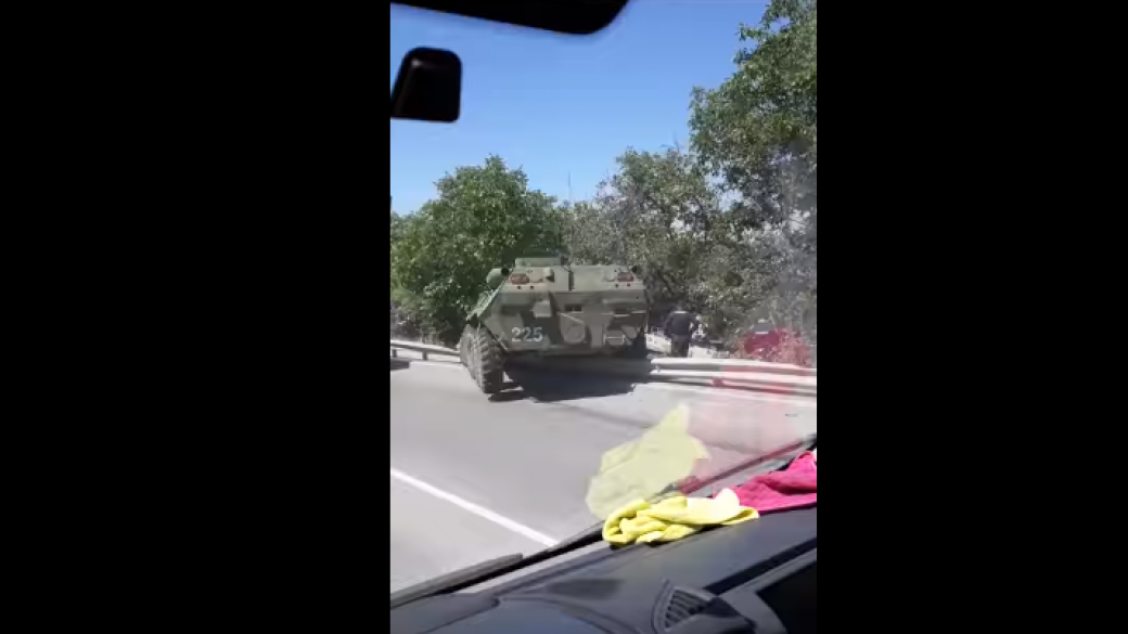 Сегодня возле оккупированного Симферополя в аннексированном Крыму бронетранспортер слетел с трассы.