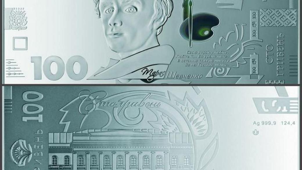 Национальный банк Украины выпустил сувенирные банкноты из серебра, воспроизводящие дизайн обновленных банкнот номиналом 500 грн образца 2015 года и номиналом 100 грн образца 2014 года.