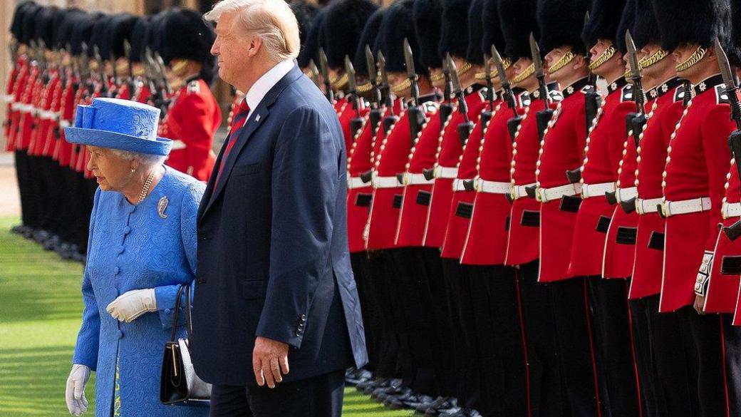 Отмечается, что она обошла вместе с американским главой ряды почетного караула. При этом Трамп во время обхода смутил Елизавету II резкой остановкой из-за этого они ненадолго замешкались после чего двинулись дальше.