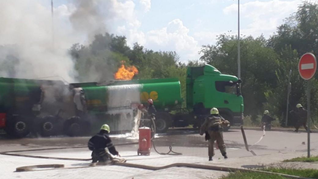 На место происшествия выехали подразделения ГСЧС и автоцистерна добровольной пожарной дружины воинской части Национальной гвардии Украины. Было установлено, что горит цистерна с бензином на общей площади 10 кв.м.
