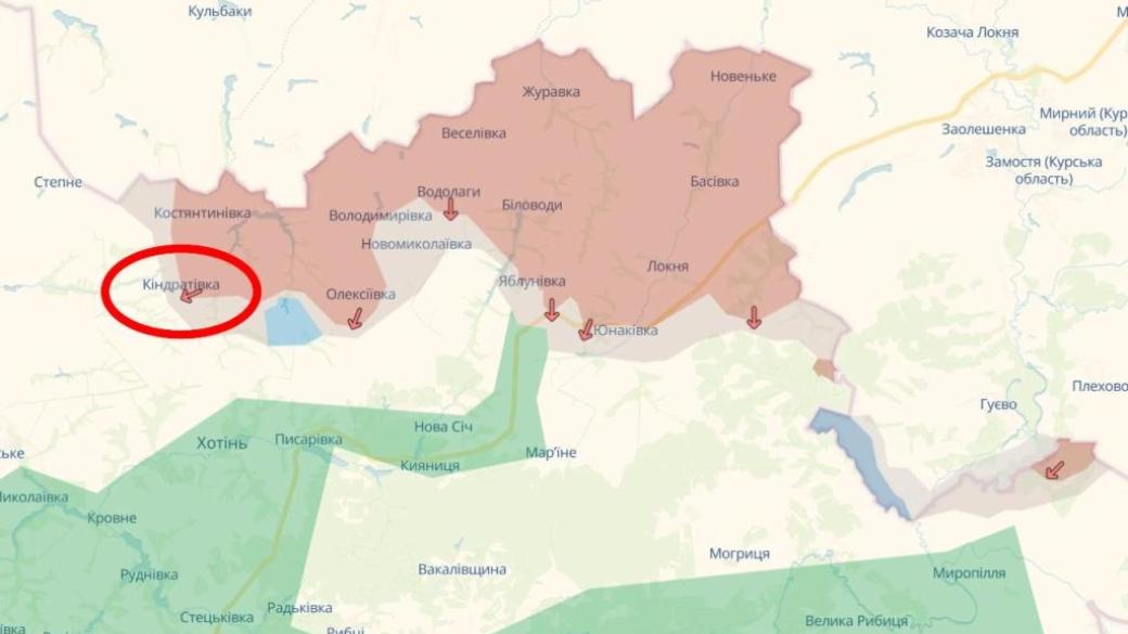 По данным канала, оккупанты потеряли позиции на северной окраине Кондратовки и вынуждены отступить. Часть группировки оказалась заблокирована в центральной части населенного пункта. Единственный коридор к выходу на Восток находится под плотным огнем украинских сил и полностью простреливается.