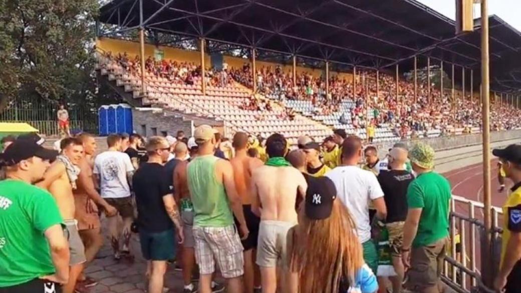 Болельщики львовского футбольного клуба «Карпаты» устроили драку на трибунах из-за российского флага.