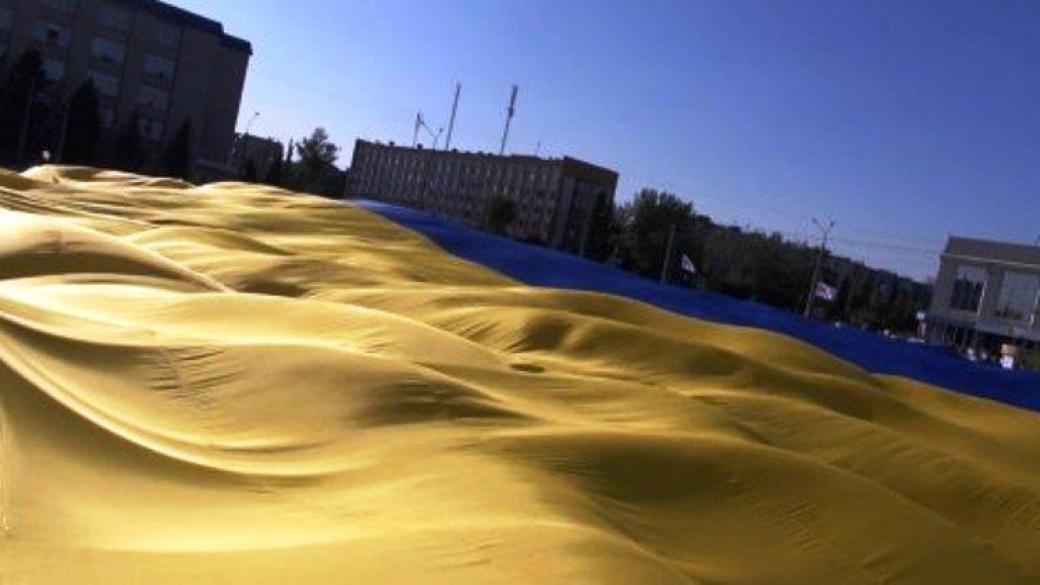 Сегодня в Северодонецк Луганской области на главной площади города развернули самый большой флаг Украины в мире.