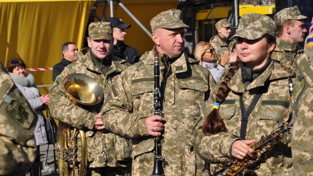 На Майдане Незалежности проходит выступление военных духовых оркестров. В ТЦ «Глобус» проходит выставка фотографий, сделанных бойцами АТО.