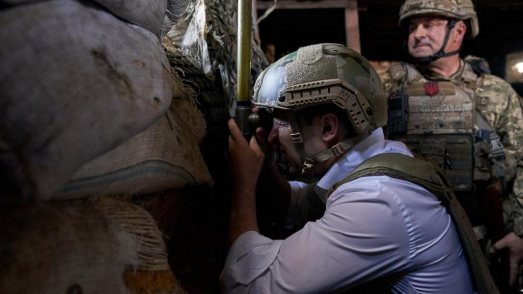 «Президент Украины Владимир Зеленский в рамках рабочей поездки в Донецкую область ознакомился с ситуацией на линии соприкосновения в зоне проведения операции объединенных сил, а также с условиями несения службы и проживания украинских военных на передовой».