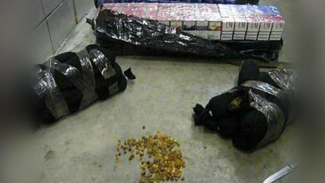 Водитель перевозил через КПП Ягодин детали и комплектующие из черных металлов, однако в прицепе машины таможенники также обнаружили 80 пачек сигарет стоимостью 12 тысяч гривен и черные носки, в которых были найдены камни желтого и коричневого цветов, похожие на янтарь.