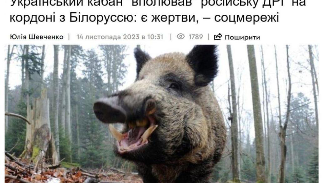 По данным пабликов, возле Чернобыльской атомной станции диверсионная группа российских военных с территории Белоруссии проникла в Зону отчуждения, минуя посты контроля и наблюдения и столкнулась со стадом диких кабанов. Ресурсы уточняют:
