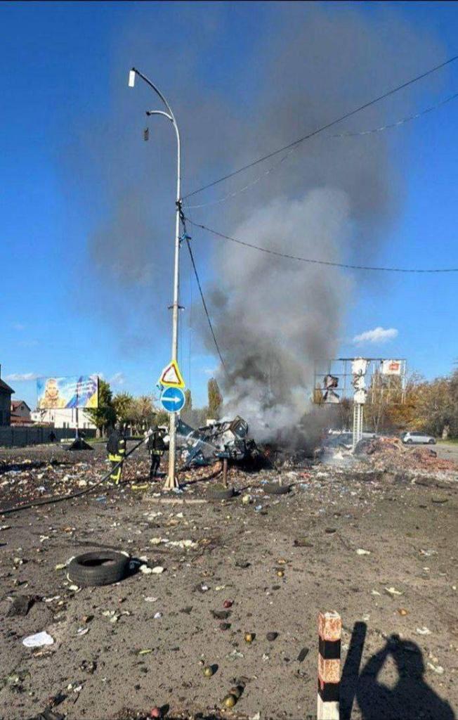 Из-за российской атаки повреждена городская площадь, фасады магазинов, а также частный транспорт.