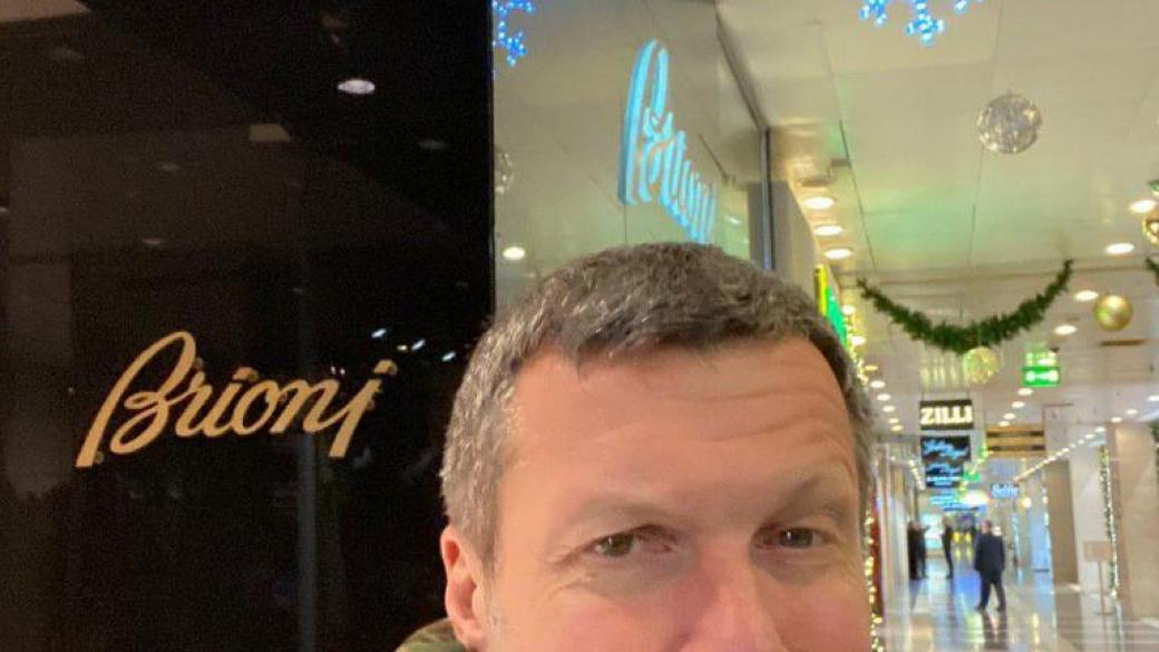 Российский пропагандист Соловьев никак не может забыть замечание президента Украины по поводу боязни запачкать дорогие туфли «Бриони». Спустя почти неделю после пресс-конференции Зеленского, он продолжает реагировать на них. Так, сегодня на своей странице в Instagram он выложил селфи на фоне магазина этого бренда.
