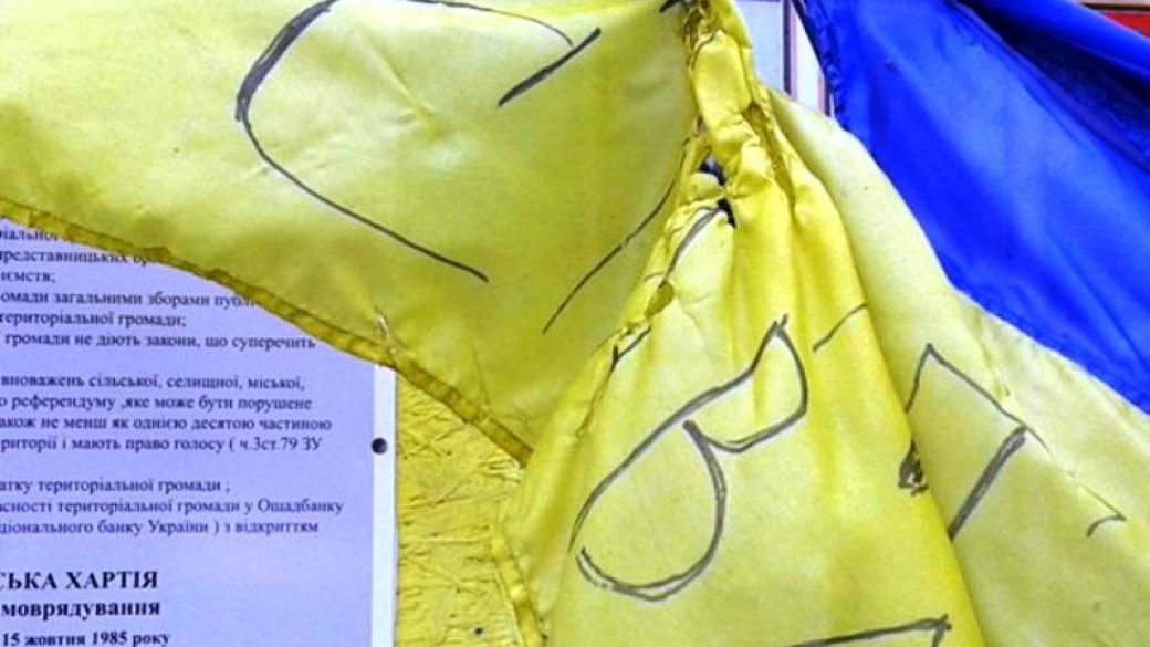 В Кривом Роге Днепропетровской области неизвестные злоумышленники подожгли флаг Украины.