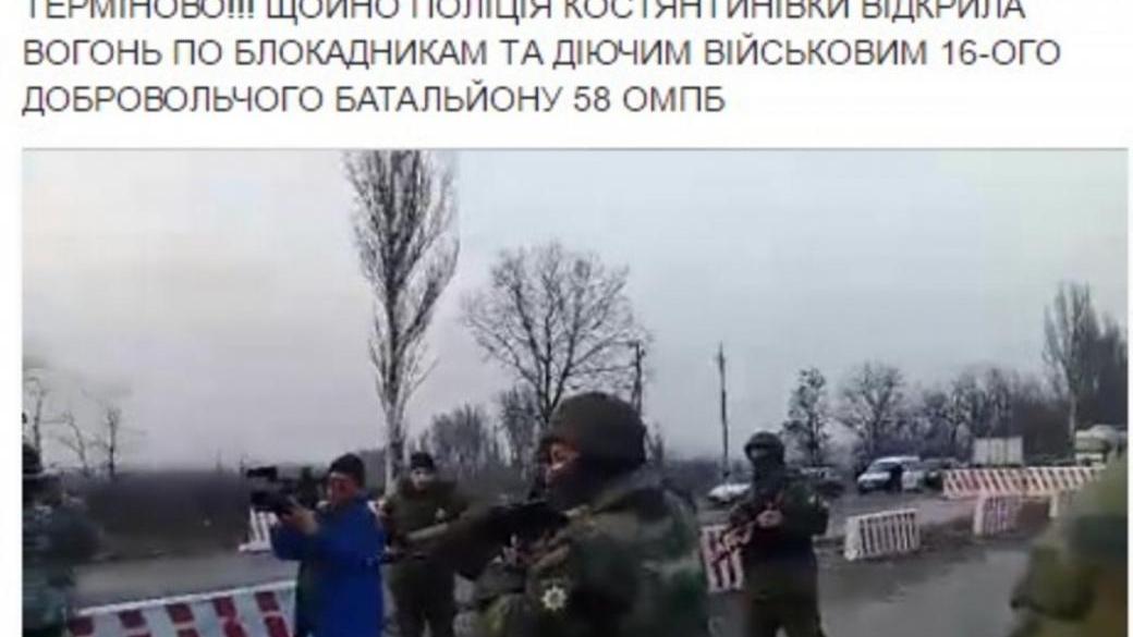 Сегодня в Константиновке Донецкой области возле блокпоста участников торговой блокады Донбасса произошла стычки с правоохранителями.