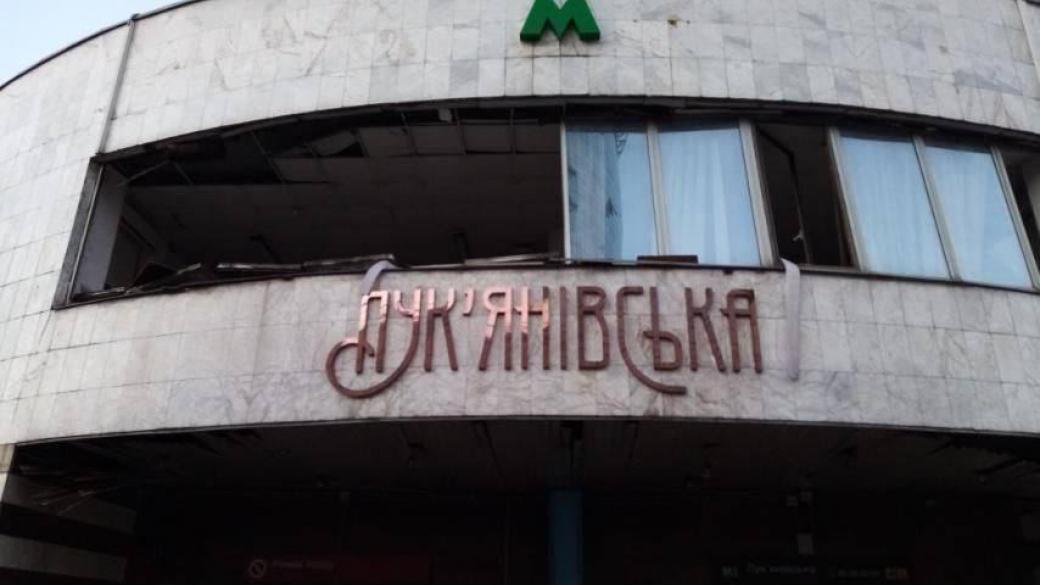 Взрывной волной от ударов российских оккупантов по жилым домам в Святошинском районе в Киеве поврежден фасад станции метро «Лукьяновская» и админздание. Об этом сообщает администрация города.