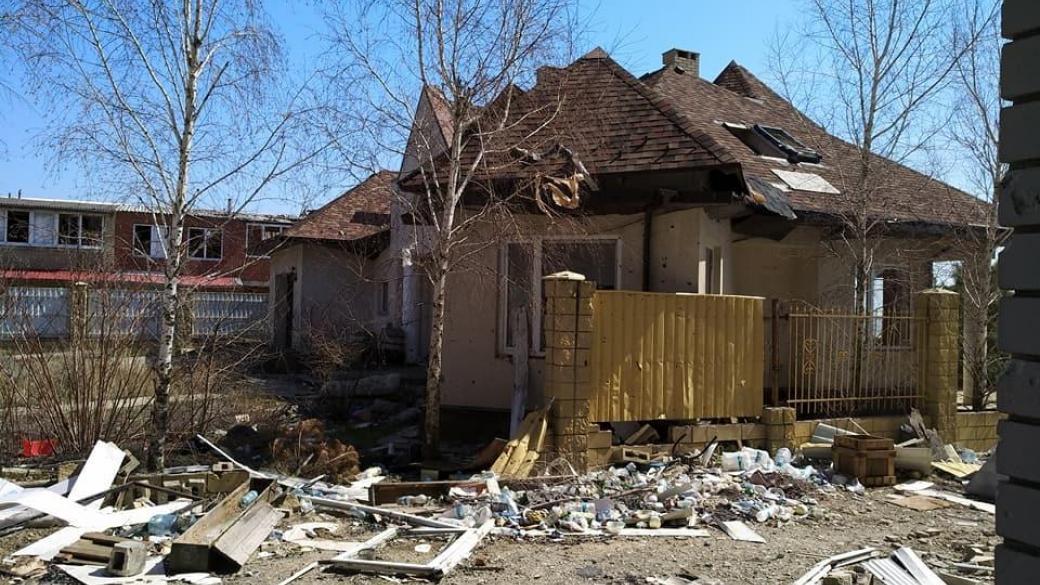 Сегодня здесь нет ни одного местного жителя, они были вынуждены эвакуироваться из-за боевых действий. В селе нет ни одного уцелевшего здания.