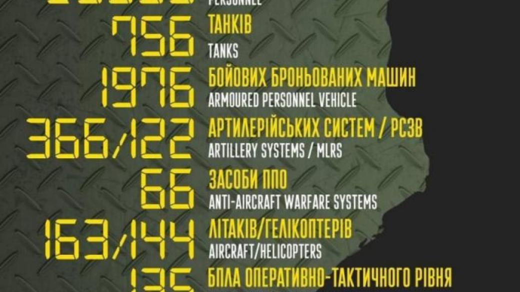 Россия за сутки потеряла в Украине почти 500 военных, самолет, вертолет и десятки танков