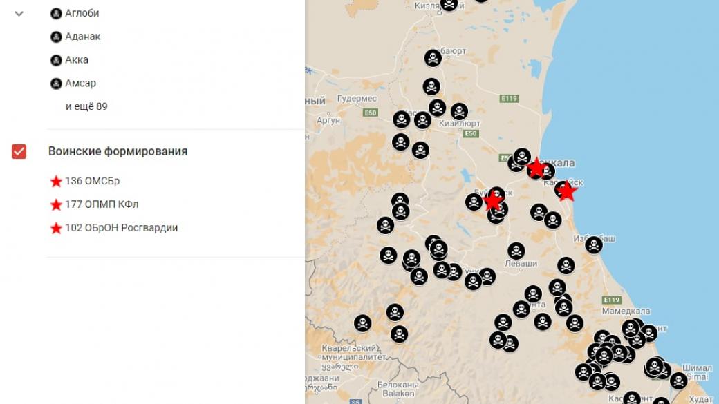 «Мы собрали эти данные в базу с фото и указанием войсковых частей ВС РФ / Росгвардии, которые удалось идентифицировать (работа по идентификации продолжается). Кроме того, на тематической странице базы размещены ссылки на таблицу с районами и населенными пунктами Дагестана с информацией о потерях. Картина по в/частям пока нерепрезентативная. Большинство идентифицированных из мотострелков, особенно из местной 136 ОМСБр (в/ч 63 354, Буйнакск). Есть и десантники, морпехи, летчики, Росгвардия. Но вообще дагестанцы служат по всей РФ», — сообщает сообщество.