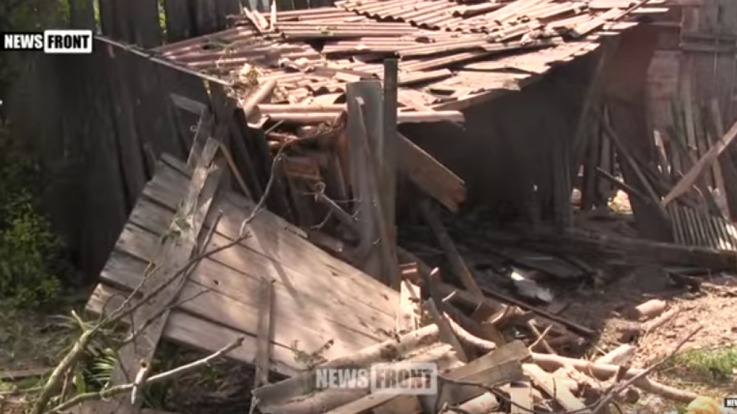 На видео видны разрушенные прямыми попаданиями снарядов частные дома и хозпостройки, а также поврежденные газовые трубы. Местные жители показали воронки от разорвавшихся снарядов, расположенные прямо во дворах жилых домов.