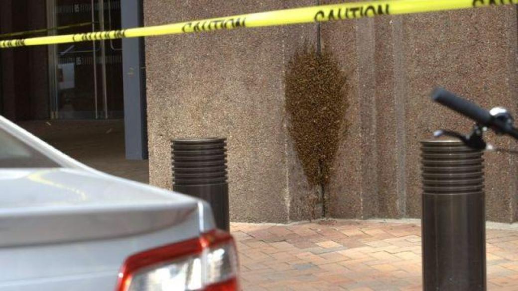 Охрана здания была вынуждена закрыть проход и вызвать пчеловодов, чтобы безопасно перенести насекомых.
