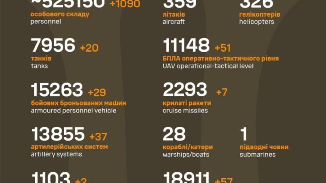 Только за последние сутки удалось ликвидировать 1090 оккупантов.