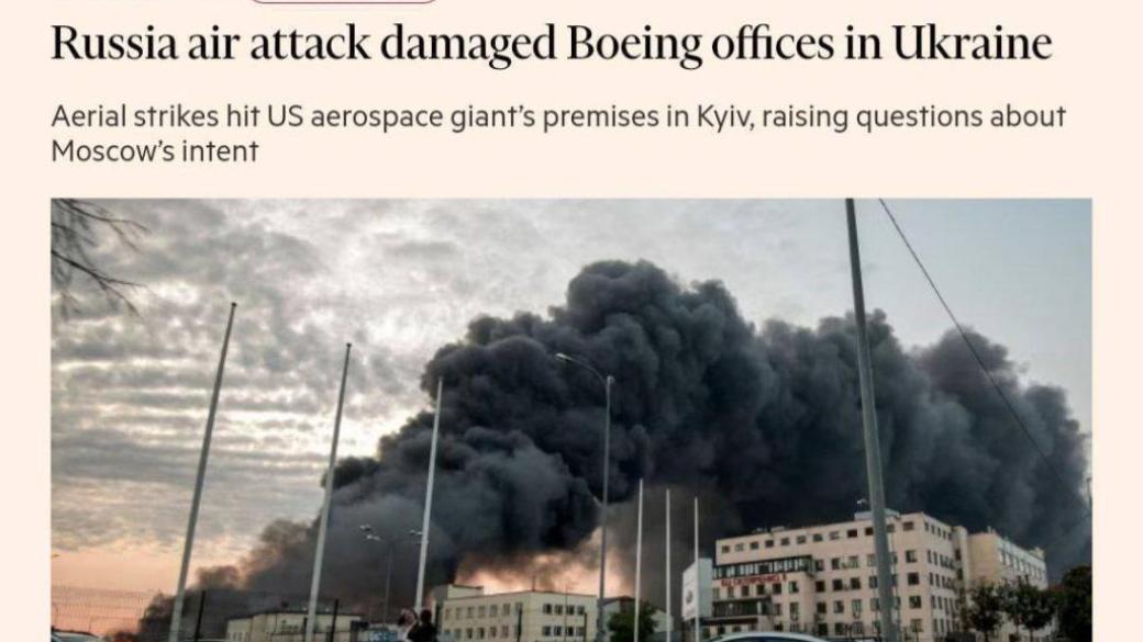 Российские войска во время одной из недавних масштабных атак ударили по офисам Boeing в Киеве. Об этом пишет Financial Times.