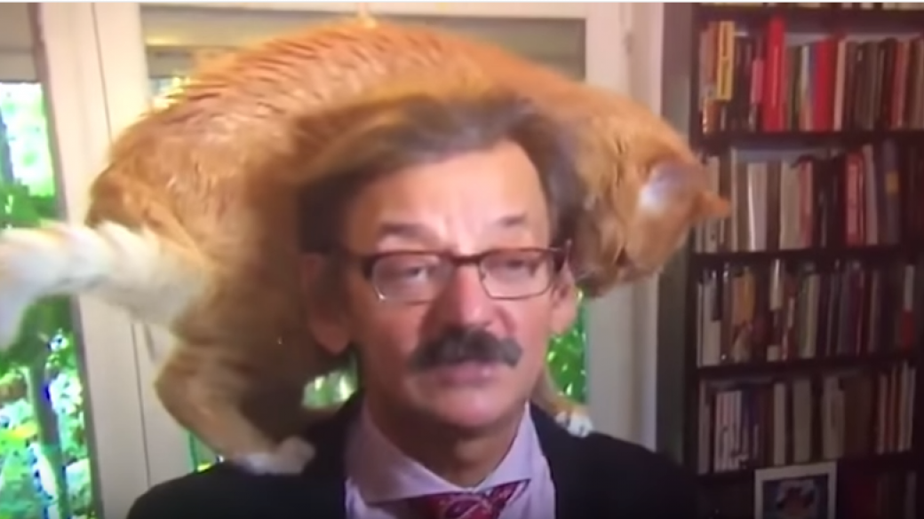 Во время интервью польского историка и публициста Ежи Таргальского голландской телевизионной телекомпании NTR забежал кот, который своим поведение сорвал эфир.