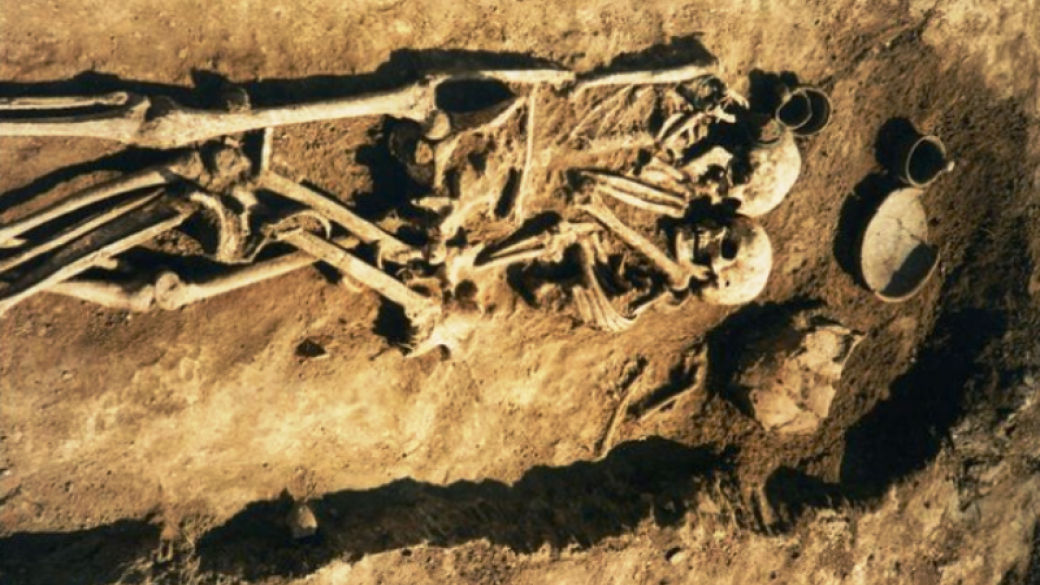 Украинский ученый Николай Бандровский, показал фото и написал: «Это захоронение уникальное: в могиле, крепко обнявшись, лежали мужчина и женщина. Оба были обращены лицами друг к другу, касаясь лбами. Женщина, лежа на боку, правой рукой нежно прижала мужчину к себе, положив запястье своей руки на его правое плечо. Ноги женщины при этом крепко сжаты и согнуты в коленях, лежали поверх вытянутых ног мужчины. На обоих покойниках находились бронзовые украшения, а в головах — расставленная полукругом глиняная посуда: миска, горшок и три черпака».