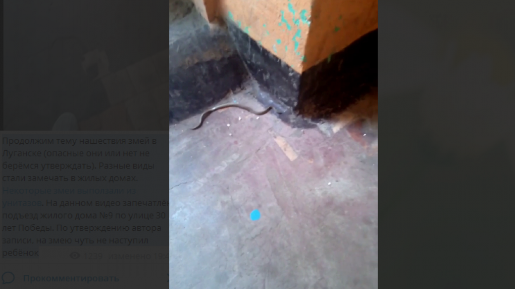 Жители многоэтажных домов в неподконтрольном Украине Луганске в социальных сетях продолжают жаловаться на нашествие змей.