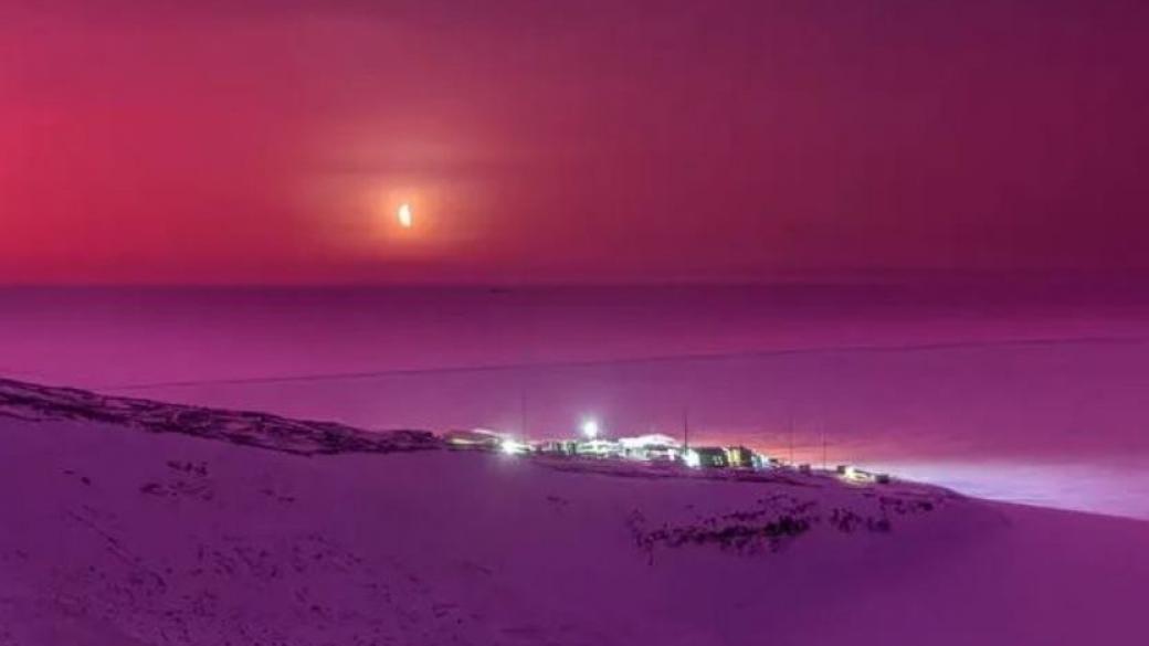 В Антарктиде небо окрасилось в розовый из-за извержения вулкана Хунга-Тонга-Хунга-Хаапай в Тихом океане.